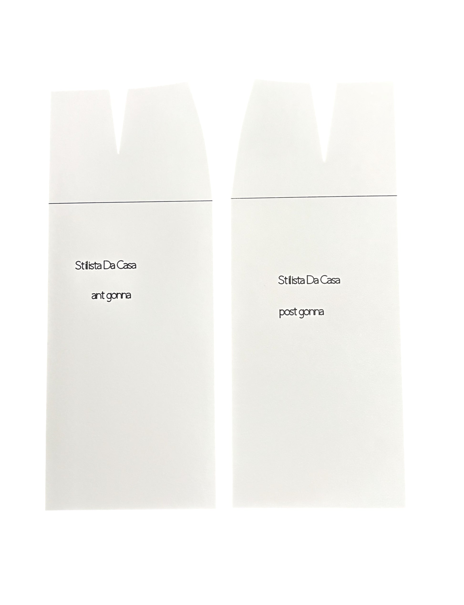 Ogni base del kit è già sagomata, completa di tacche, segni e dritto filo, per garantire un'esperienza di tracciamento e modifica precisa e intuitiva. Basta appoggiare la base sul foglio, tracciare il contorno e segnare i punti principali attraverso i fori predefiniti. Da qui, potrai liberare la tua creatività e sperimentare con trasformazioni modellistiche su misura.