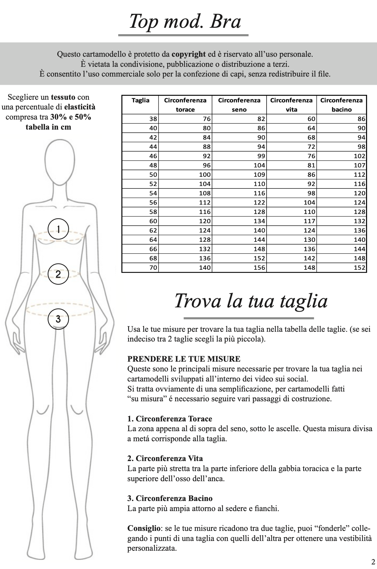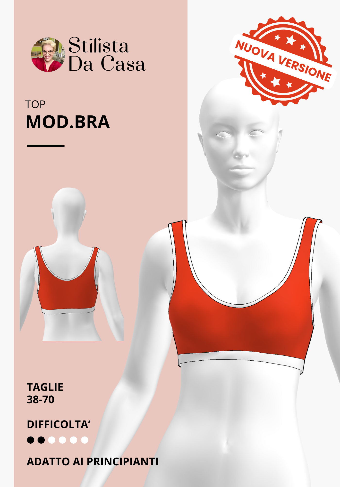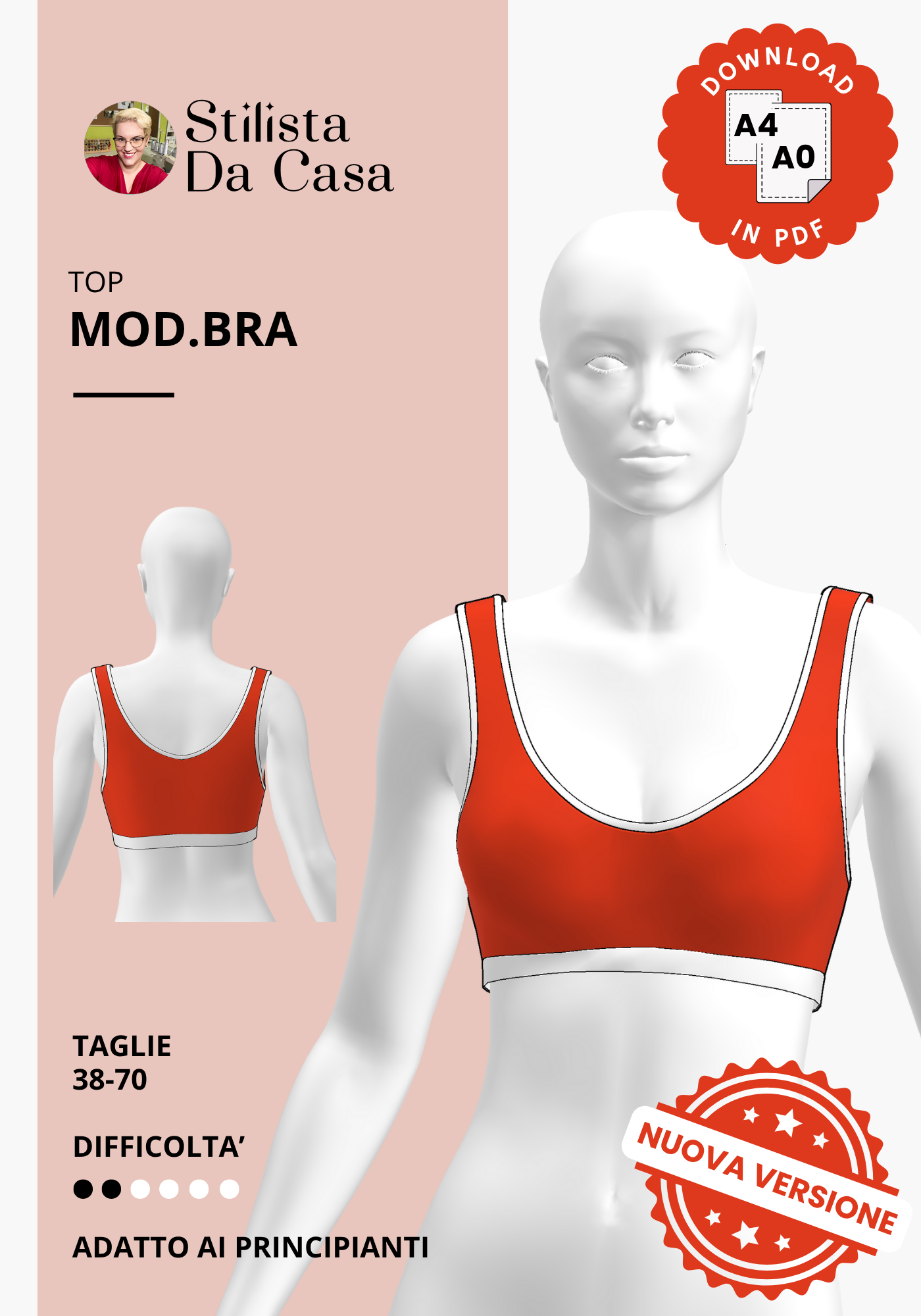 Il modello BRA è pensato per realizzare un top aderente, comodo e femminile, ideale per lo sport o per creare un costume da bagno personalizzato.