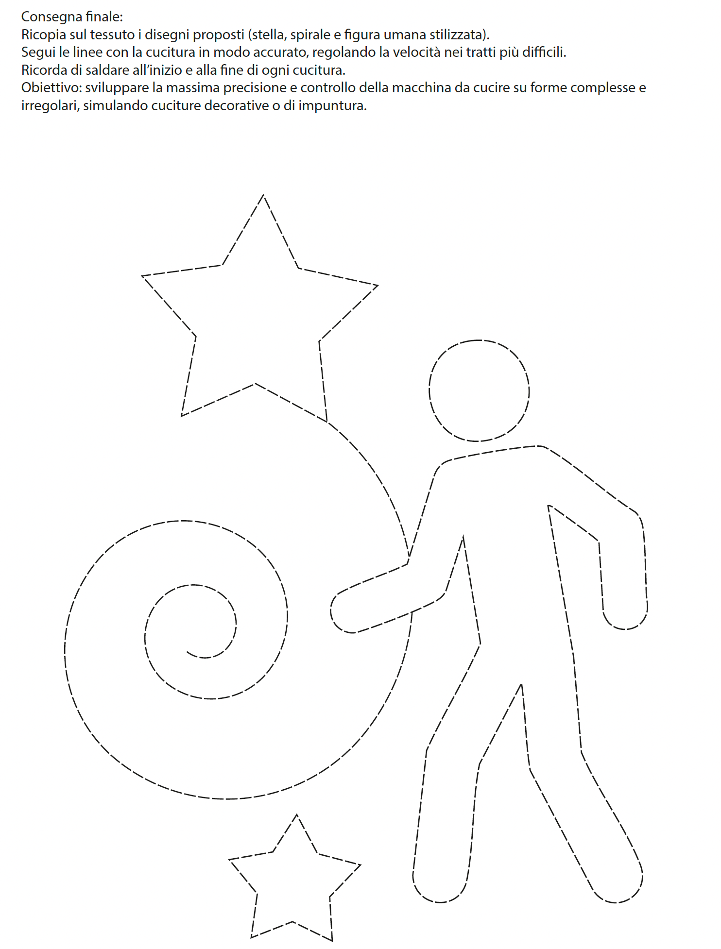 Non sono un progetto finito, ma esercizi guidati pensati per allenare il movimento, la coordinazione e la confidenza con la macchina per cucire.